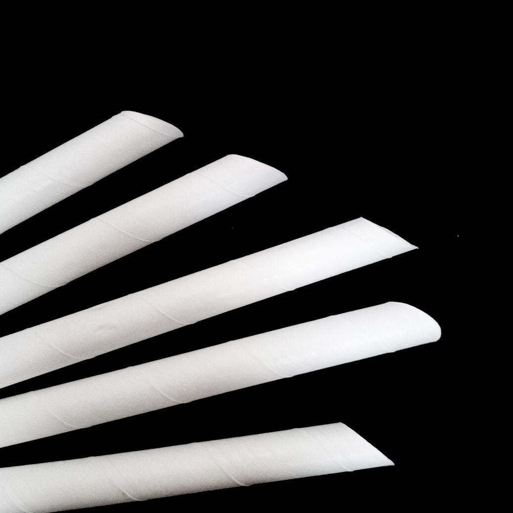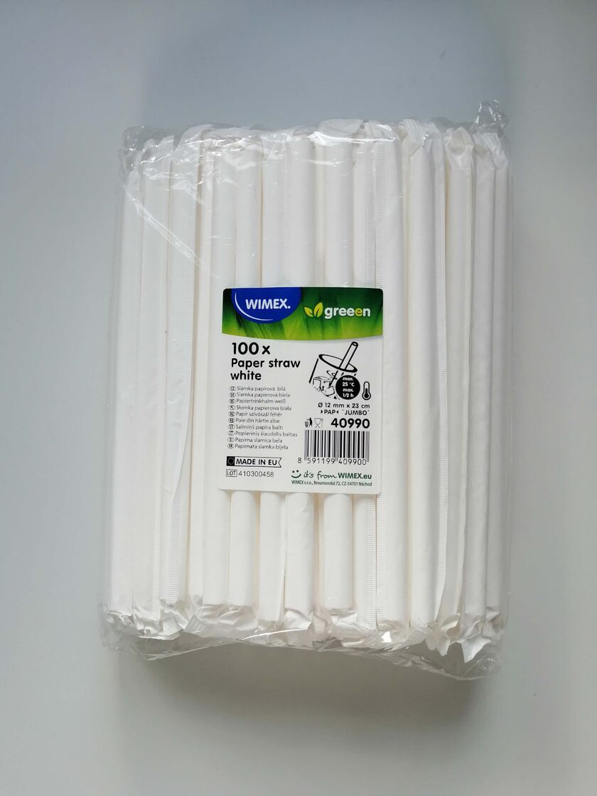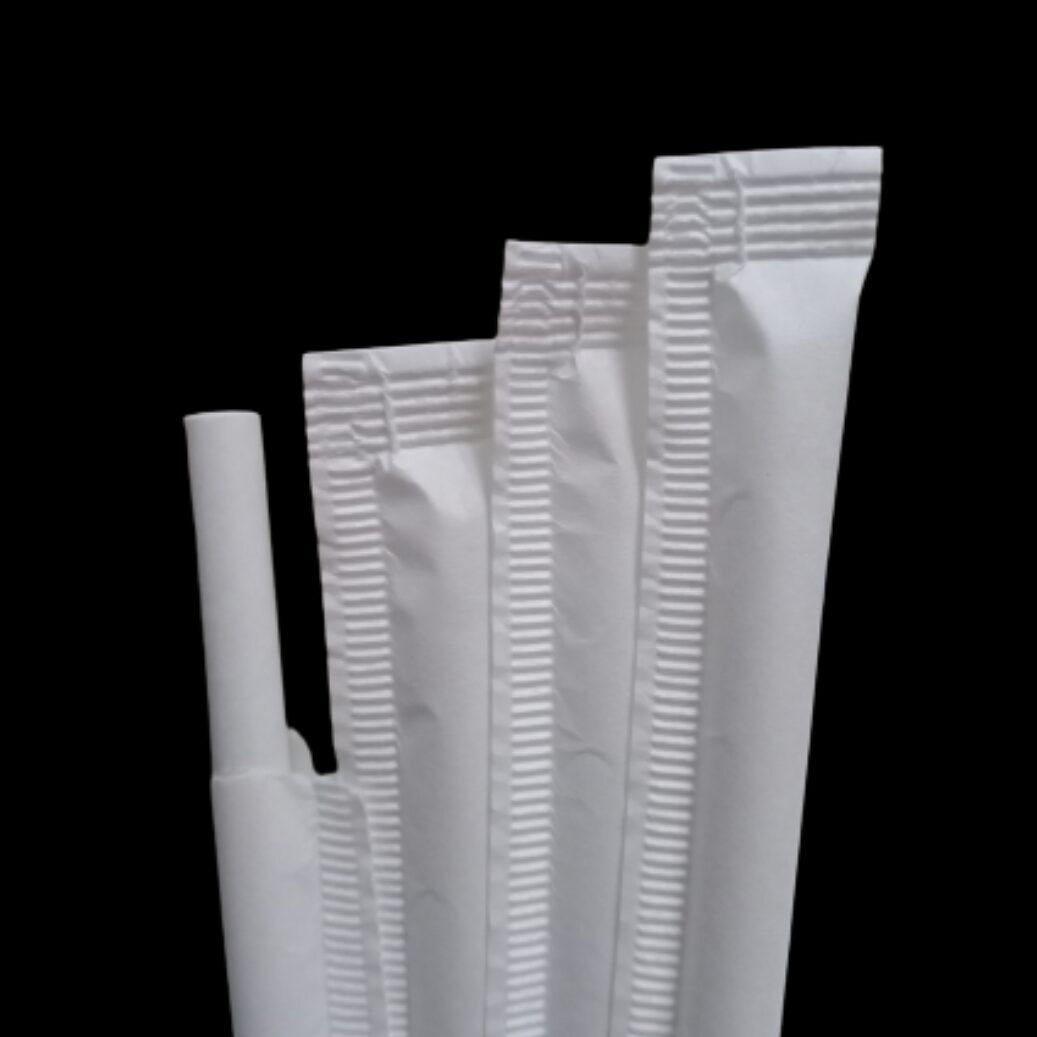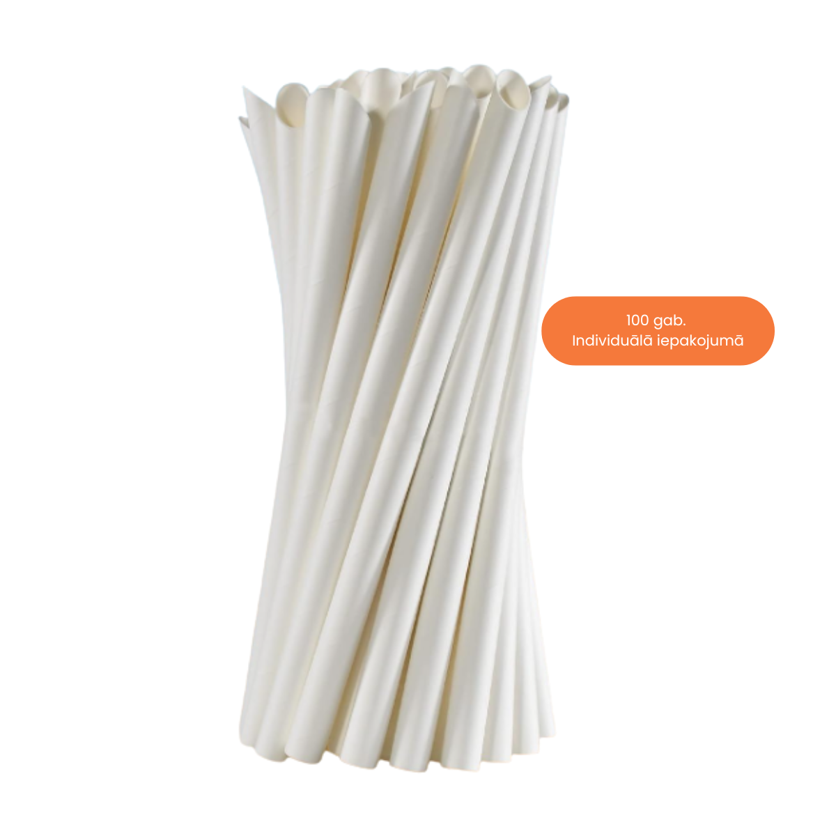 Balti papīra salmiņi individuālā iepakojumā. Piemēroti burbuļtējai